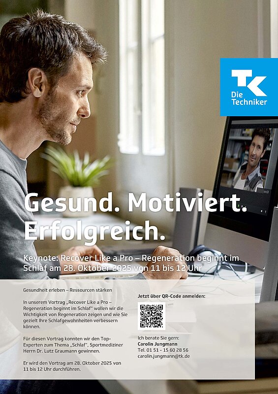 In unserem Vortrag „Recover Like a Pro – Regeneration beginnt im Schlaf“ wollen wir die Wichtigkeit von Regeneration zeigen und wie Sie gezielt Ihre Schlafgewohnheiten verbessern können. Sie erhalten direkt: